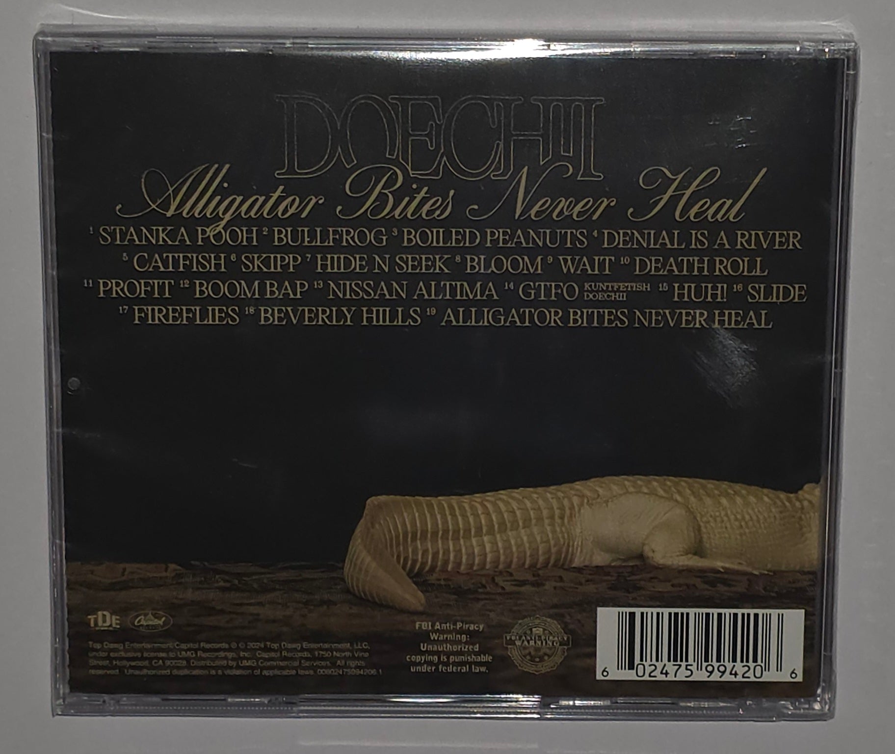 2025 release. With her GRAMMY Award-winning mixtape "Alligator Bites Never Heal," rapper, singer and visionary artist Doechii delivers 19 tracks following the weekly "Swamp Session" installments that lit the internet on fire with eye-catching visuals and equally compelling bars. The Best Rap Album-winning project, featuring "DENIAL IS A RIVER" and "NISSAN ALTIMA," captures a rare talent in her rawest form yet giving listeners distinct windows into her one-of-a-kind artistry. EXPLICIT